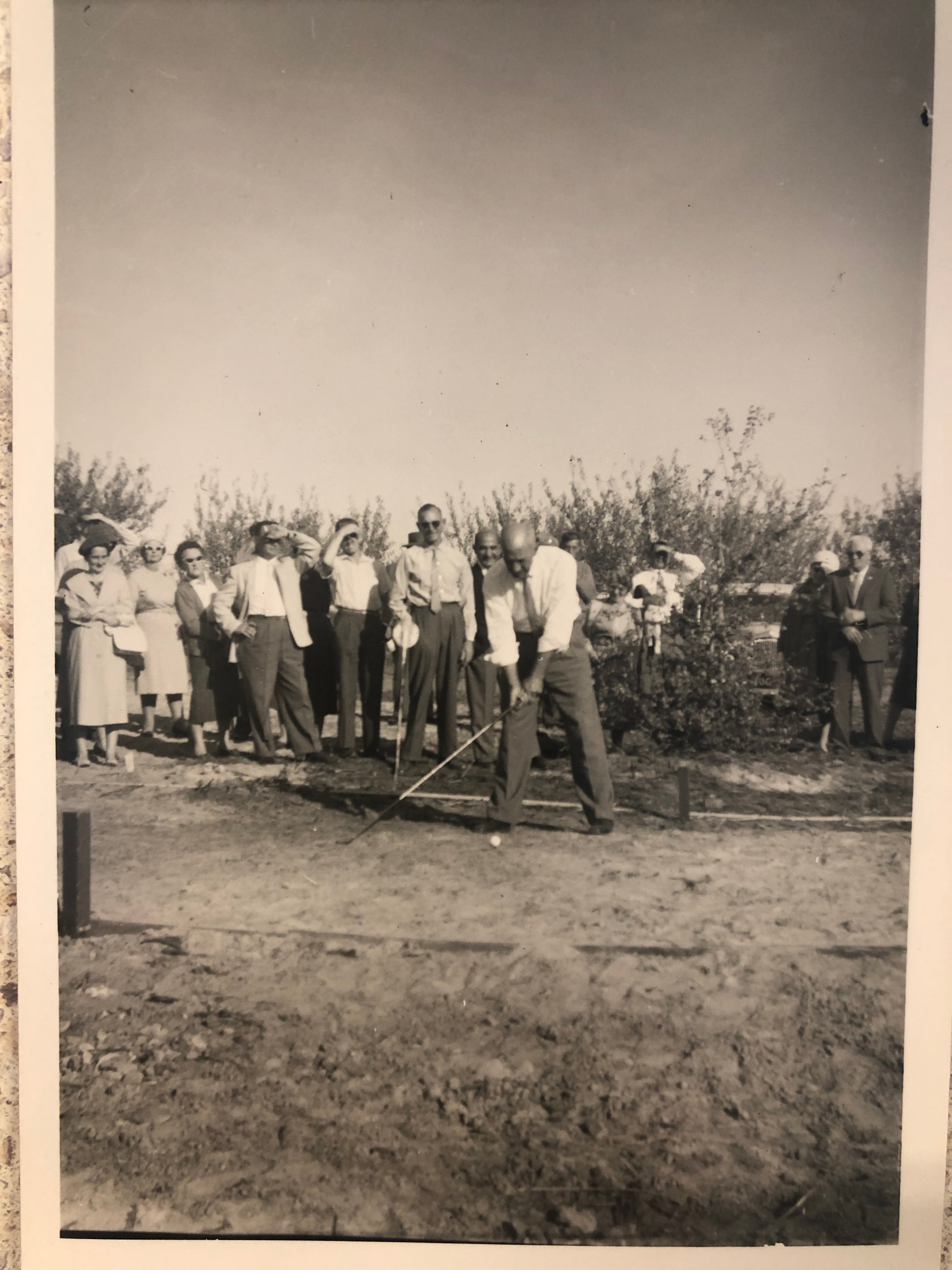 In June 1930, the Club moved to links on land owned by Mr Sparrow of Sandy Creek. The 9 hole course was described as picturesque with “an out play of 2281 yards, made up of 410 yards, 103, 334, 212, 268,118, 351, 177 and 308 (the last a dog-leg). The greens have been specially prepared, and offer an excellent putting surface over slag, procured from Port Pirie. ” The “bogey” for the course was 37.